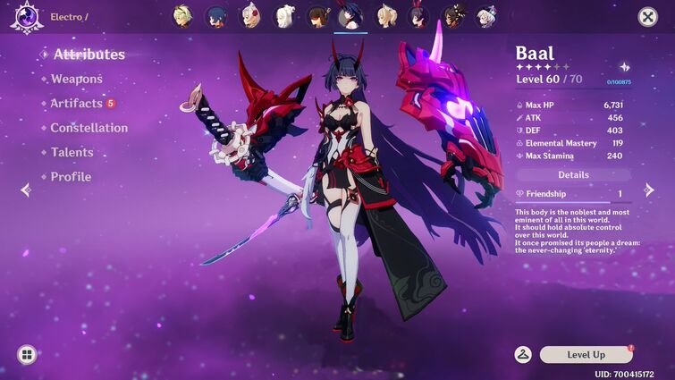 Baal Ascension Materials These are the total materials needed to reach the max ascension level for Baal. Baals Ascension Materials As the archon of Electro players will probably have guessed that Baal will need as many Vajrada Amethysts in as many. You will be able to wish for Baal starting from Sept 1 or Sept 2 depending on the release of the patch.